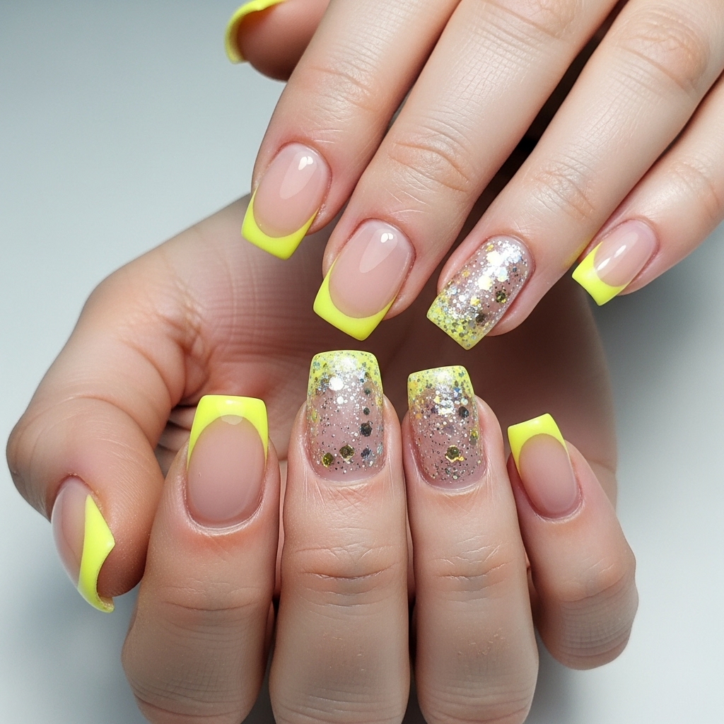 13. Glittery Butter Yellow Tips