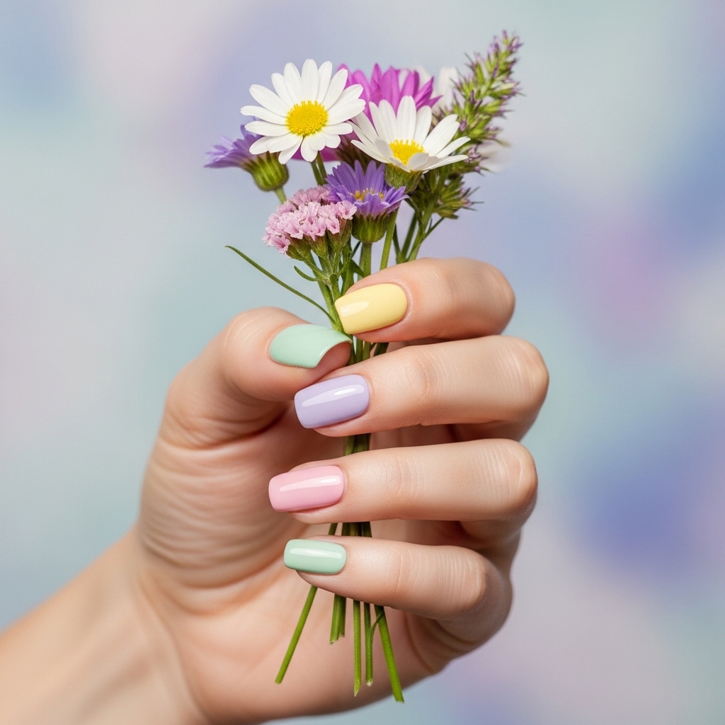 14. Mix-and-Match Pastel Nails