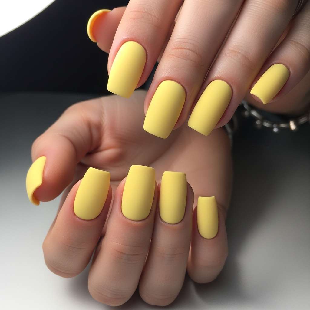 For a high-fashion vibe, go matte. This muted, velvety finish transforms the cheerful shade into a chic, editorial look that feels modern and understated.