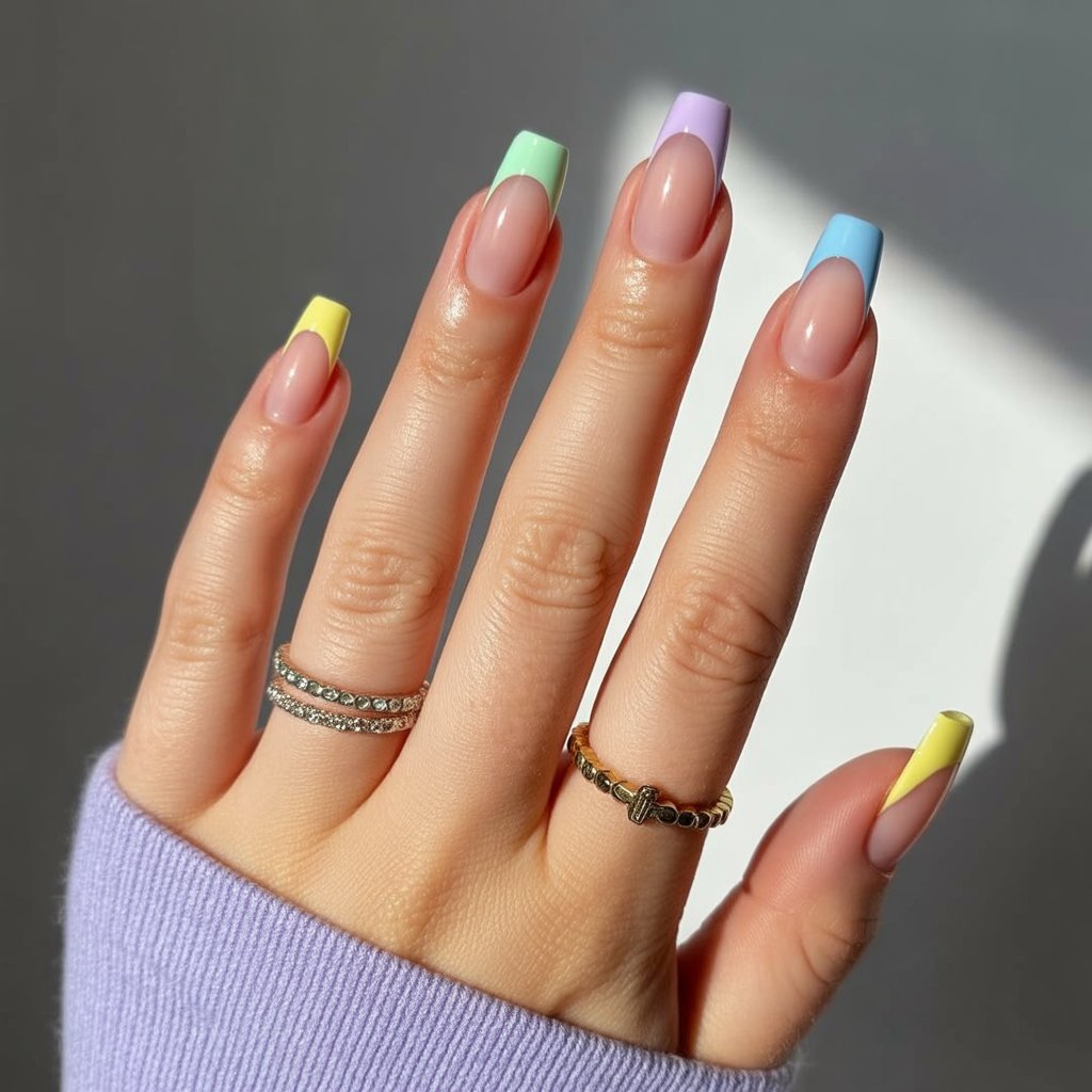 8. Pastel Rainbow French Tips