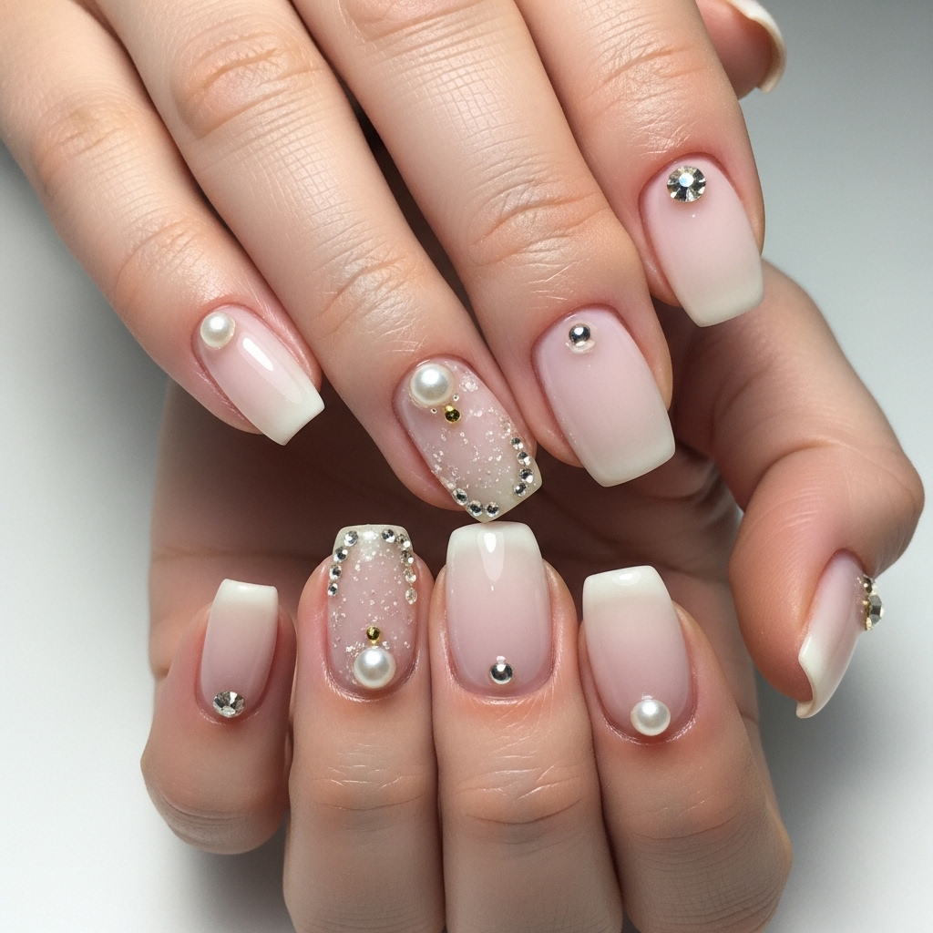 - Seal accents (pearls/gems) with a sturdy no-wipe gel or builder base for all-day wear.