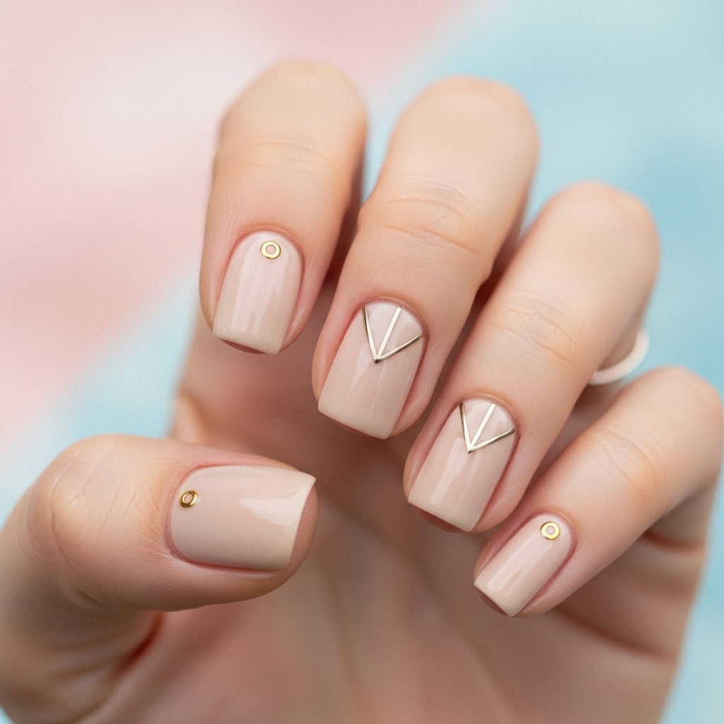 Think tiny gold circlets, single metallic triangles, or fine lines—minimal yet striking. These geometric motifs offer a modern aesthetic that balances subtle and bold perfectly.