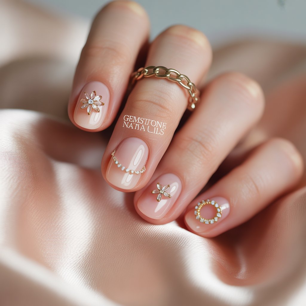For a daring but refined look, add a tiny gemstone daisy, metallic chain loop, or small polished circlet. It reads like jewelry for your nails—bold yet bridal-ready .