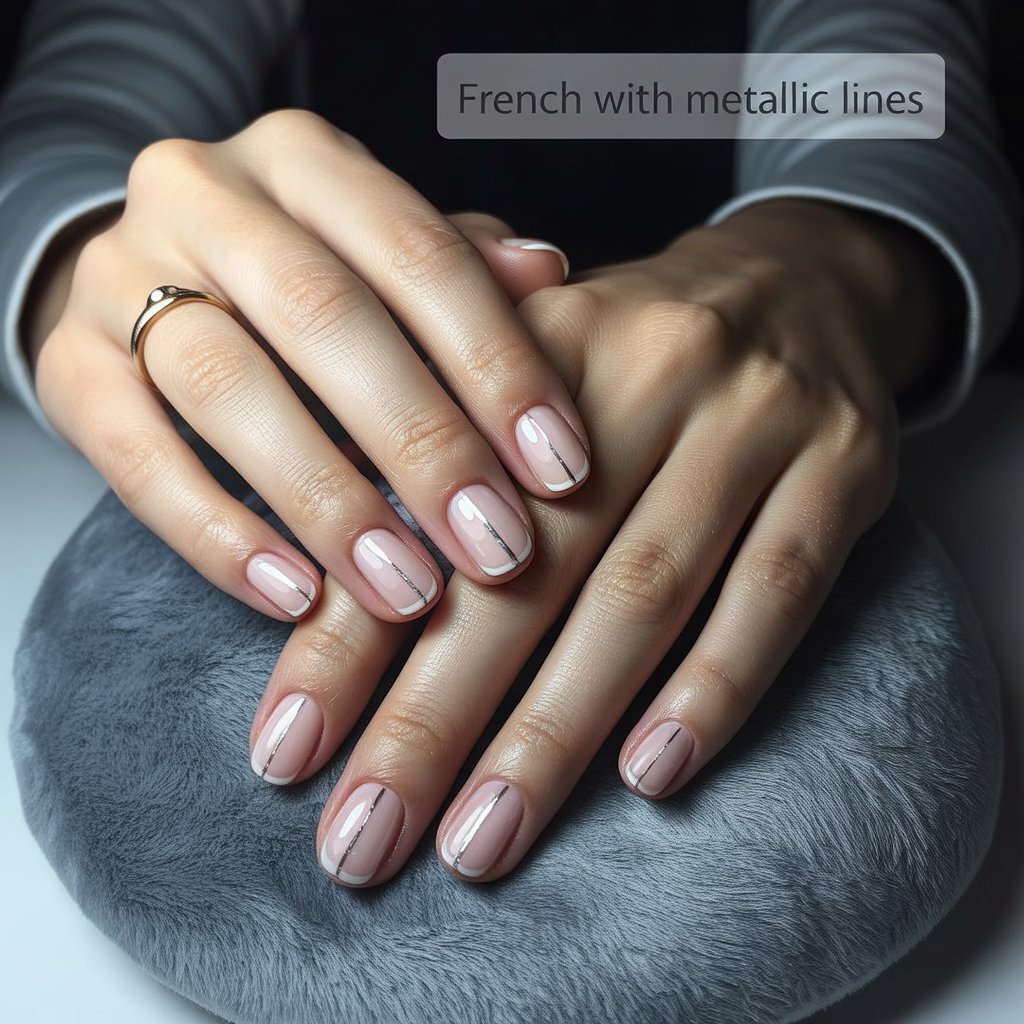 Give classic French a sleek upgrade: thin gold or silver stripes instead of white tips. This look is clean, luxurious, and adds a little sparkle to each digit.
