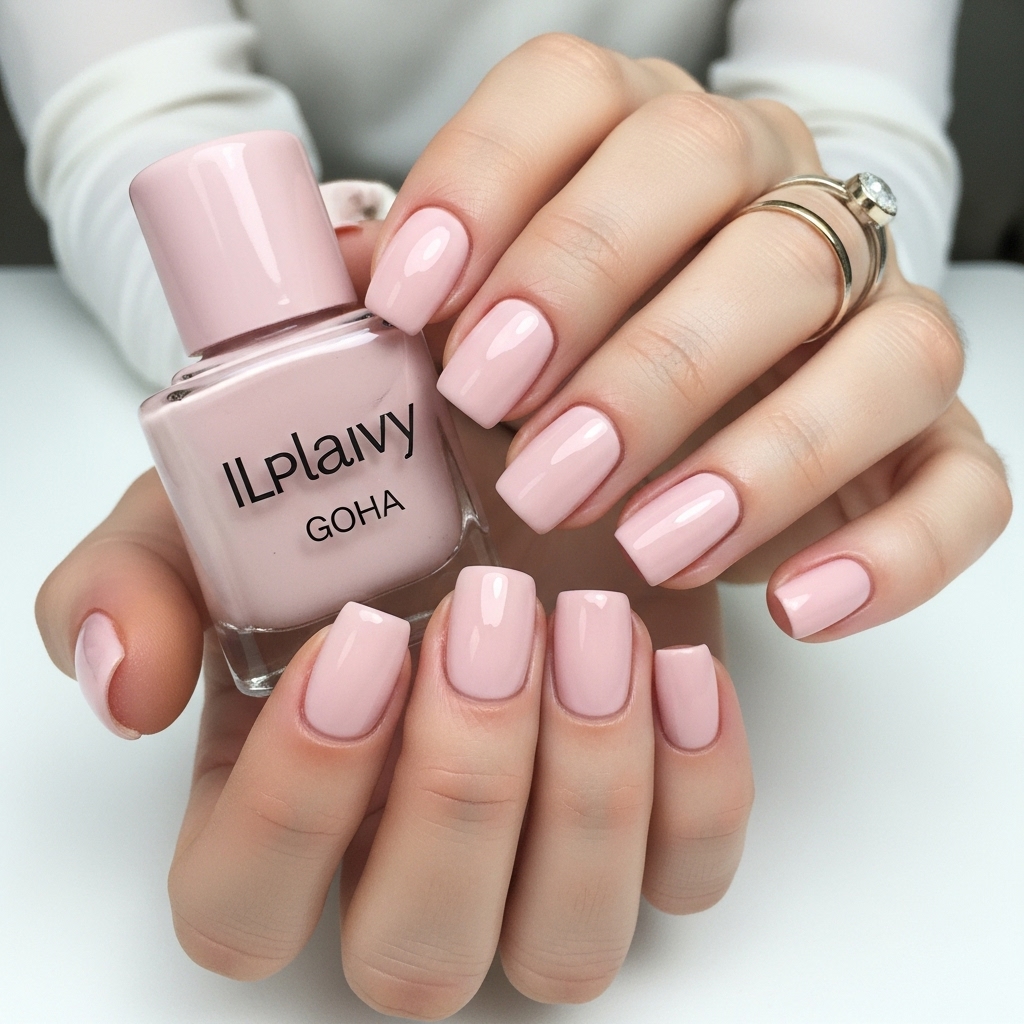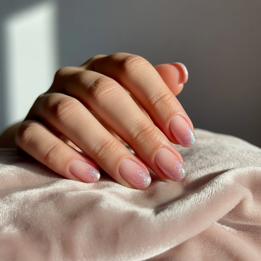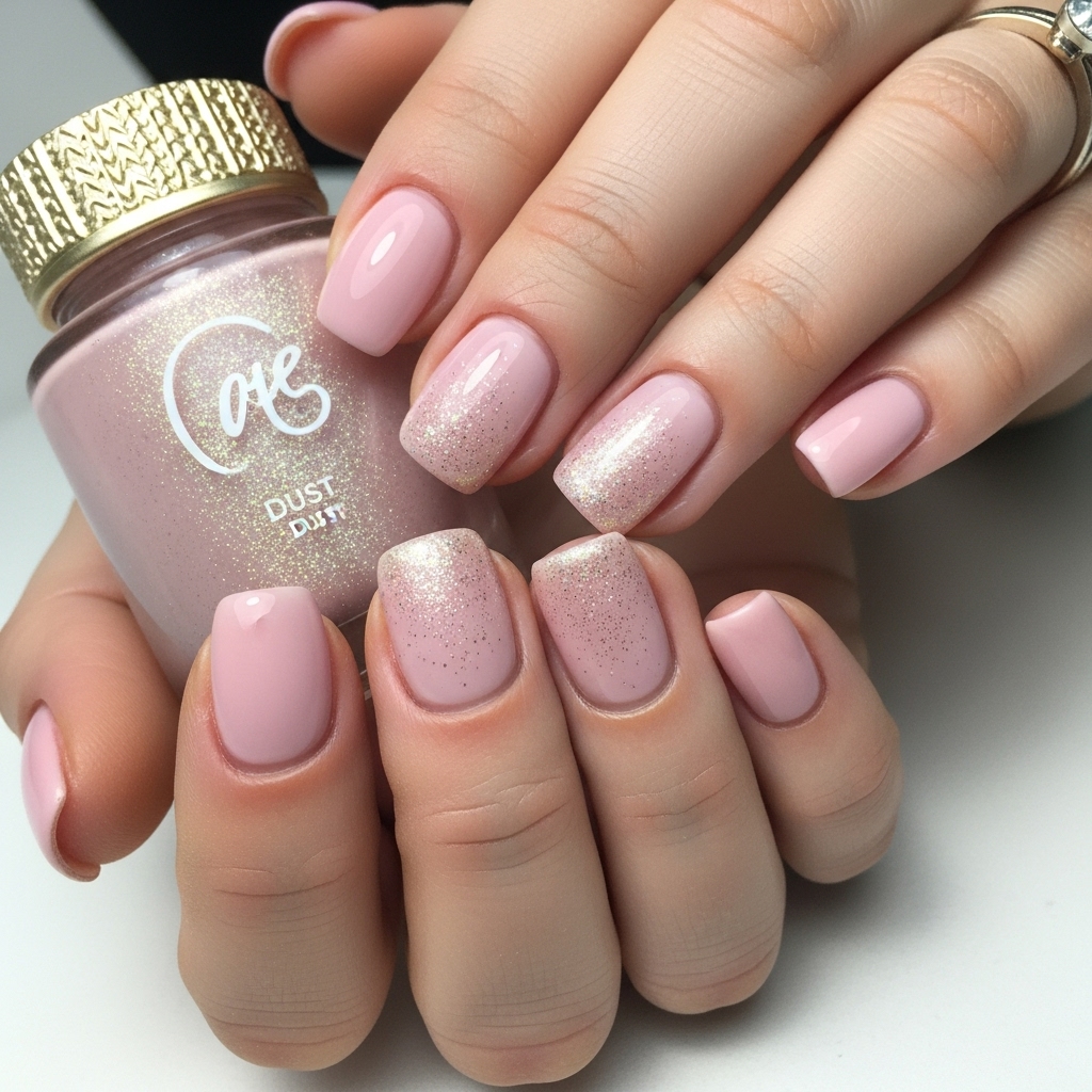 For brides who prefer simplicity, a pale pink base with a fine glitter overlay creates a magical, understated glow that looks stunning in every wedding photo.