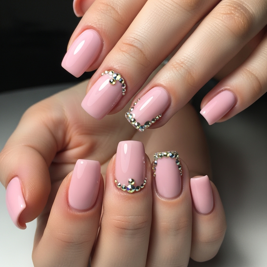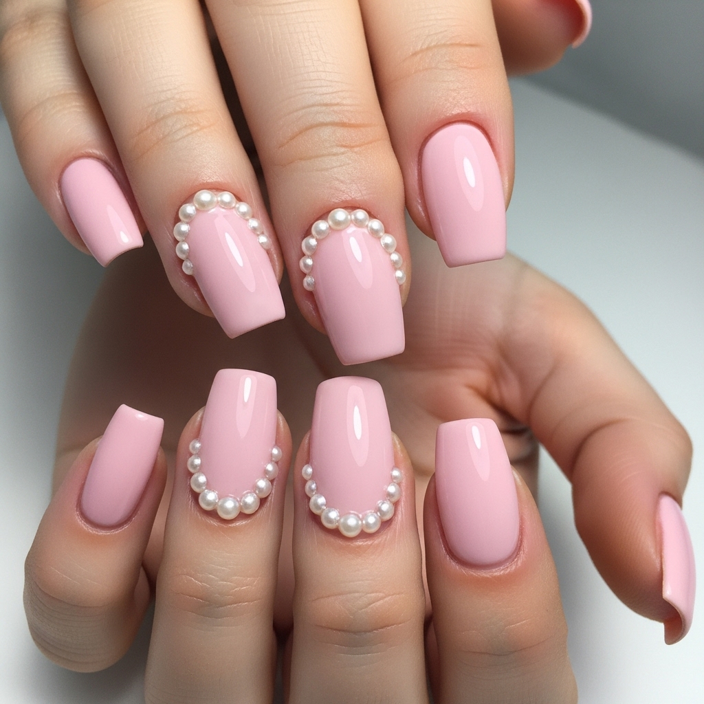 Nothing says “bridal beauty” like pearls. Adorn a pastel pink base with small pearls arranged at the cuticle line or in delicate patterns for a sophisticated, royal look.