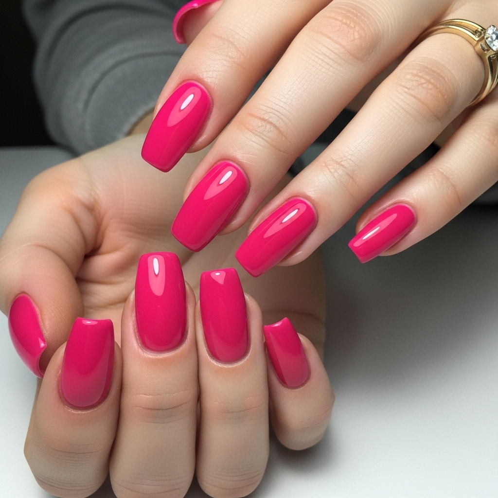 For bold brides who aren’t afraid to make a statement, fuchsia nails add a vibrant pop of color that still feels romantic. Keep the shape sleek and glossy to balance the vibrancy.