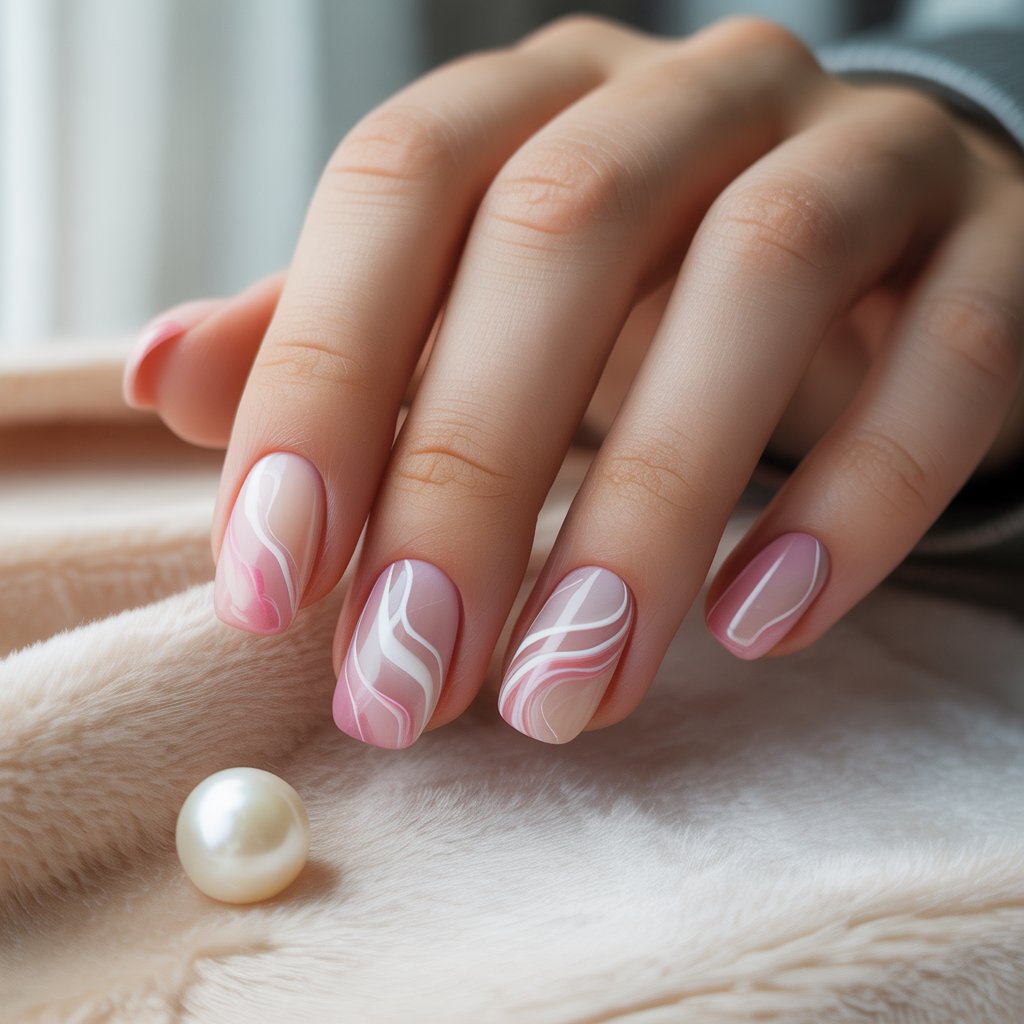 Marble designs in white and soft pink create an ethereal, dreamy look. This elegant style works beautifully with any gown and suits brides seeking something unique yet subtle.
