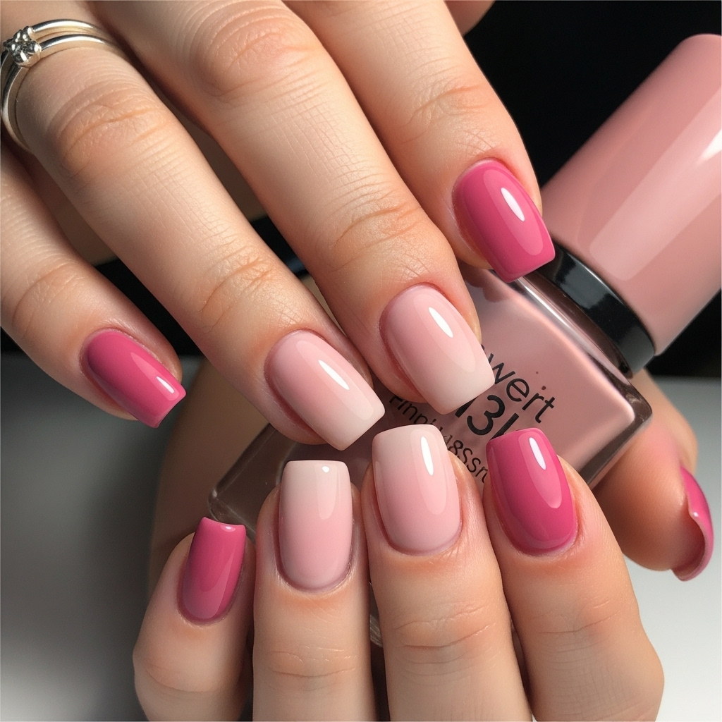Can’t decide on just one pink? A gradient manicure featuring multiple shades — from pale blush to deep rose — creates a soft ombré effect that’s modern and striking.