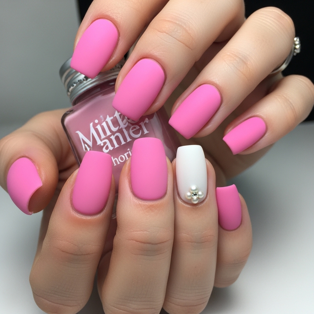 Matte pink nails exude a soft, velvety vibe perfect for brides who prefer a contemporary and understated style. Add a single rhinestone or pearl accent to one nail for a touch of bridal sparkle.