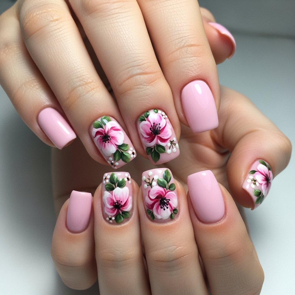 Floral nail art pairs beautifully with pink hues, making it ideal for spring or garden weddings. Hand-painted blossoms or 3D floral appliqués can transform your nails into tiny bouquets.